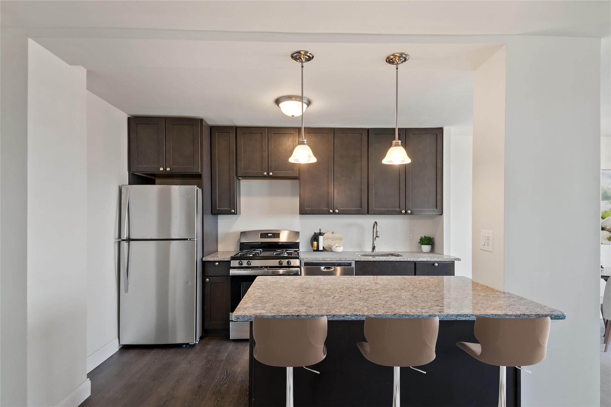 Don’t miss this opportunity to own a bright, modern 2-bedroom co-op in the vibrant Soundview section of the Bronx! This updated sponsor unit features an open-concept kitchen with shaker-style dark wood cabinetry, granite countertops, and stainless-steel appliances. Dark wood-tone vinyl plank flooring flows throughout, creating a warm, modern aesthetic that complements the light neutral walls. As a sponsor unit, there’s no board approval required, and you can buy with just 5% down—making the path to ownership simpler and faster. Low monthly maintenance includes all utilities for added convenience. The building offers parking available for rent, is gated for security, and features two private playgrounds, 24-hour security, and a well-maintained community atmosphere. Located near public transportation, parks, shopping, and major highways, this is your chance to own a beautifully updated home in an exciting, up-and-coming neighborhood.